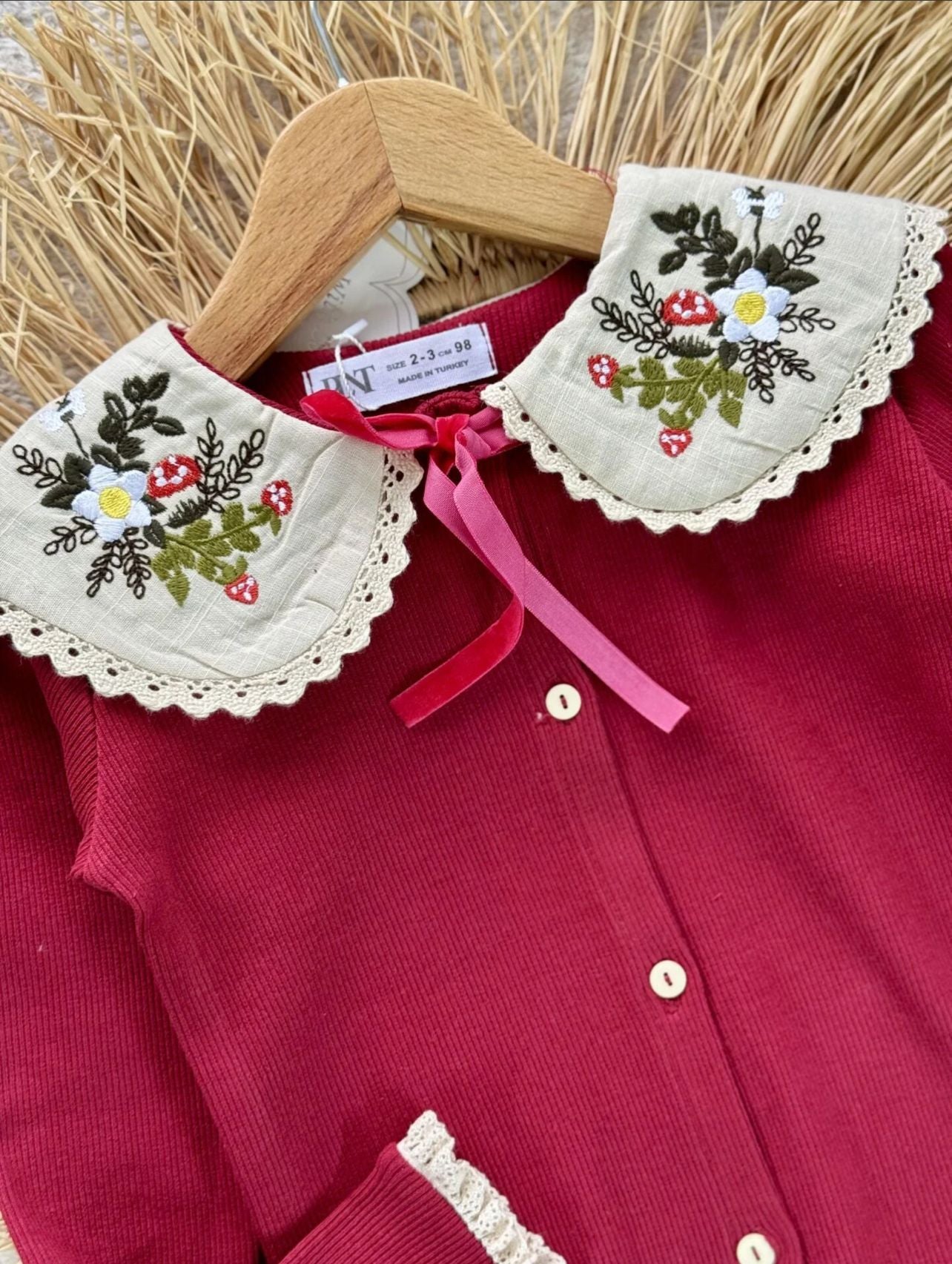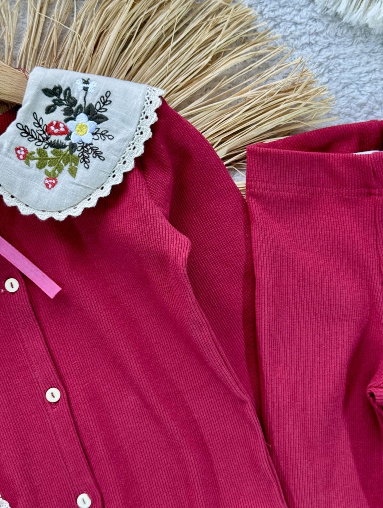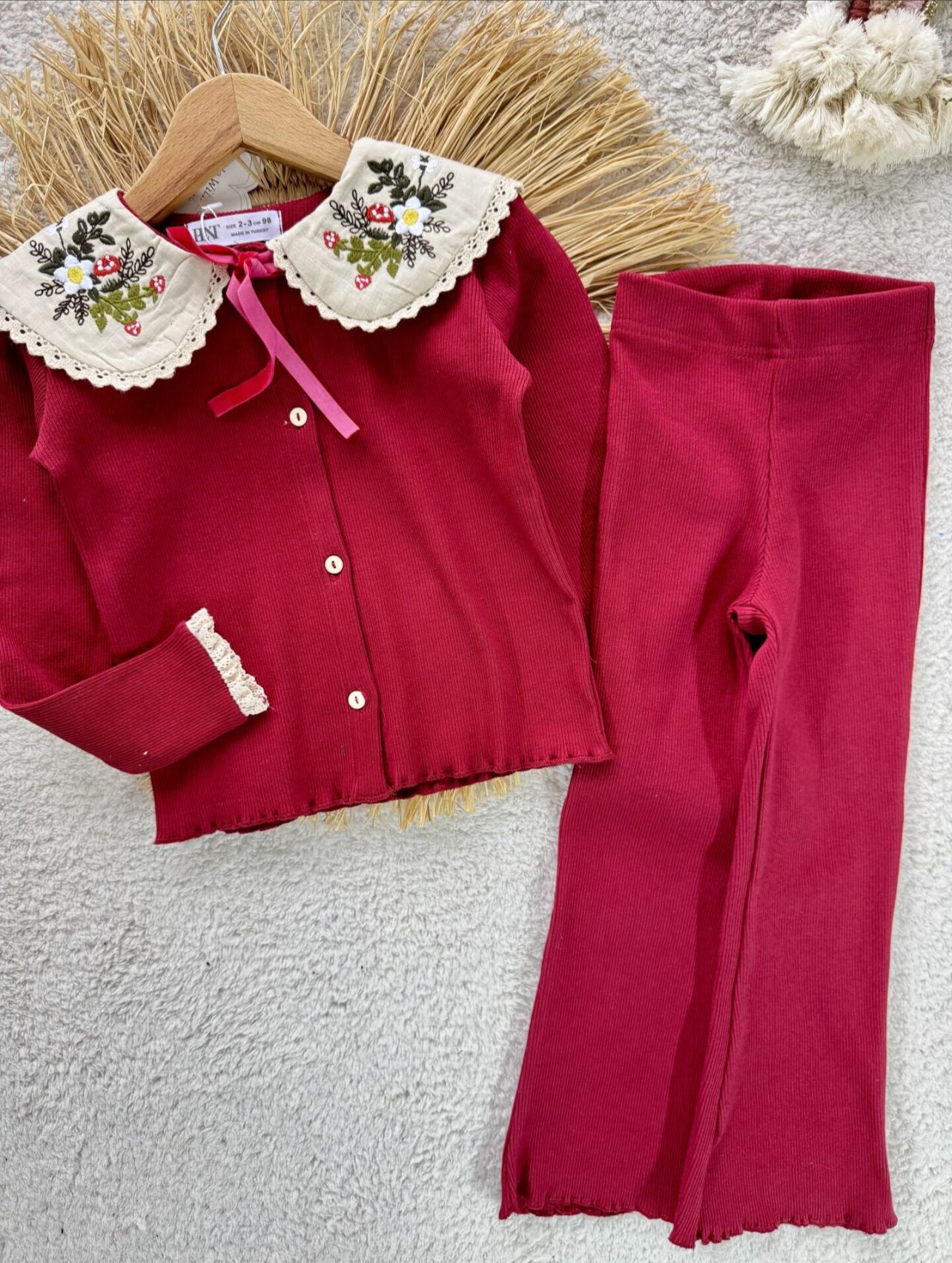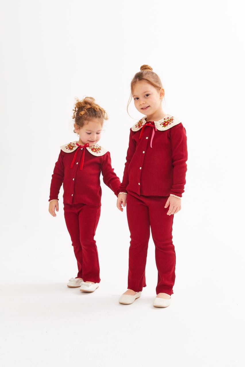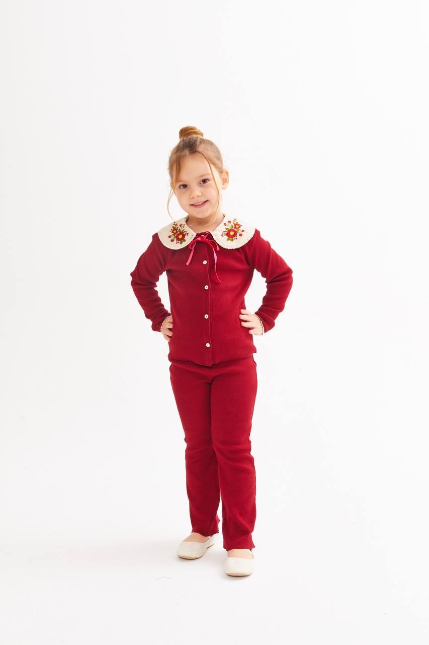 Bebe Yaka Taytlı İkili Takım-Kırmızı