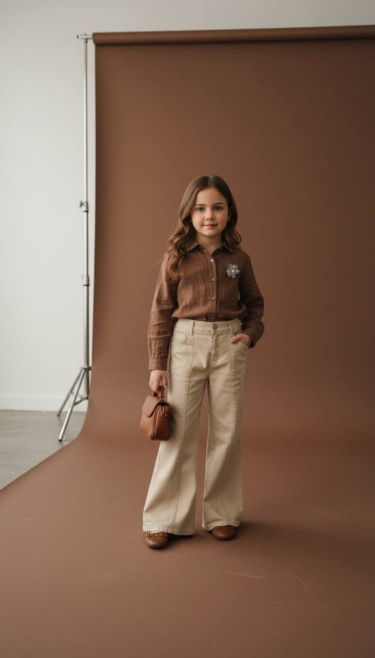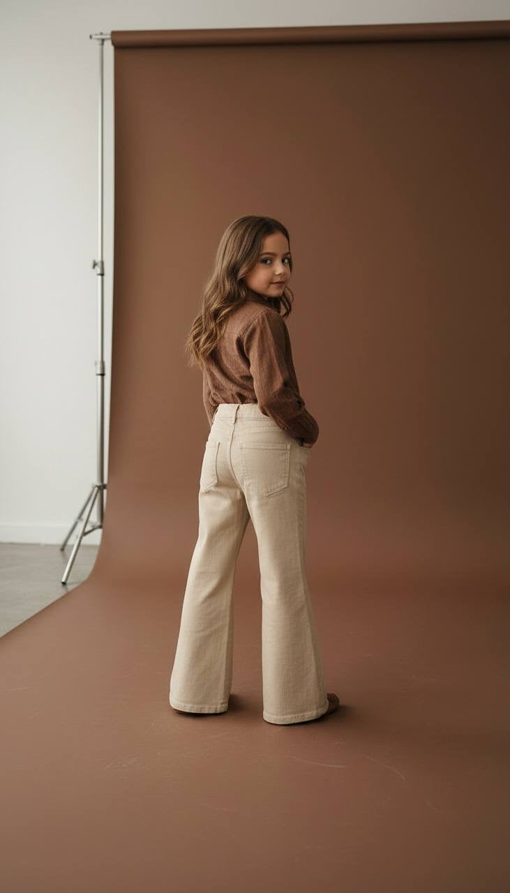 Klasik ve modern stilin mükemmel uyumu! Little Bee Baby kalitesiyle tasarlanan bu bej kanvas pantolon, minik hanımların gardırobuna hem şıklık hem de konfor getiriyor. İspanyol paça (flare) kesimiyle retro bir hava sunan bu parça, her mevsim kombinlerin yıldızı olacak.