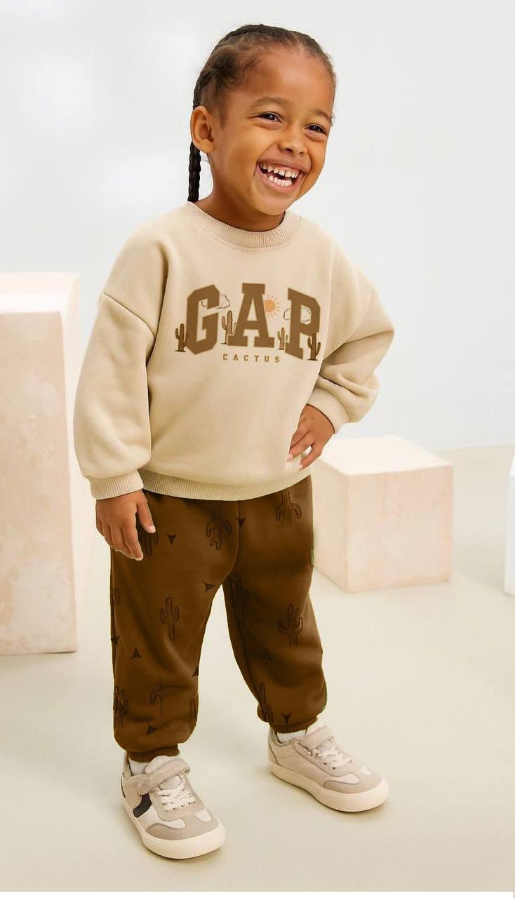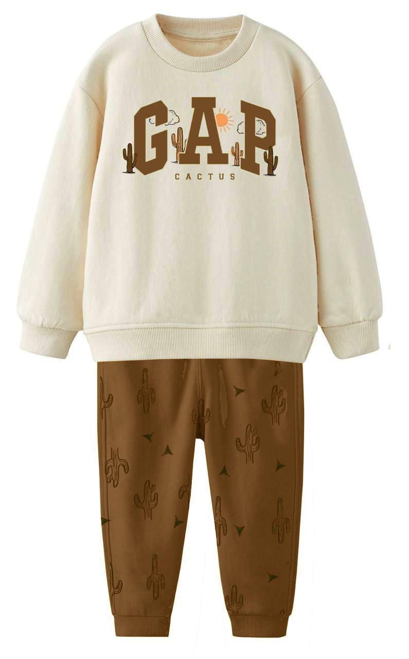 GAP Kaktüs Desen Baskılı İkili Takım-Kahverengi