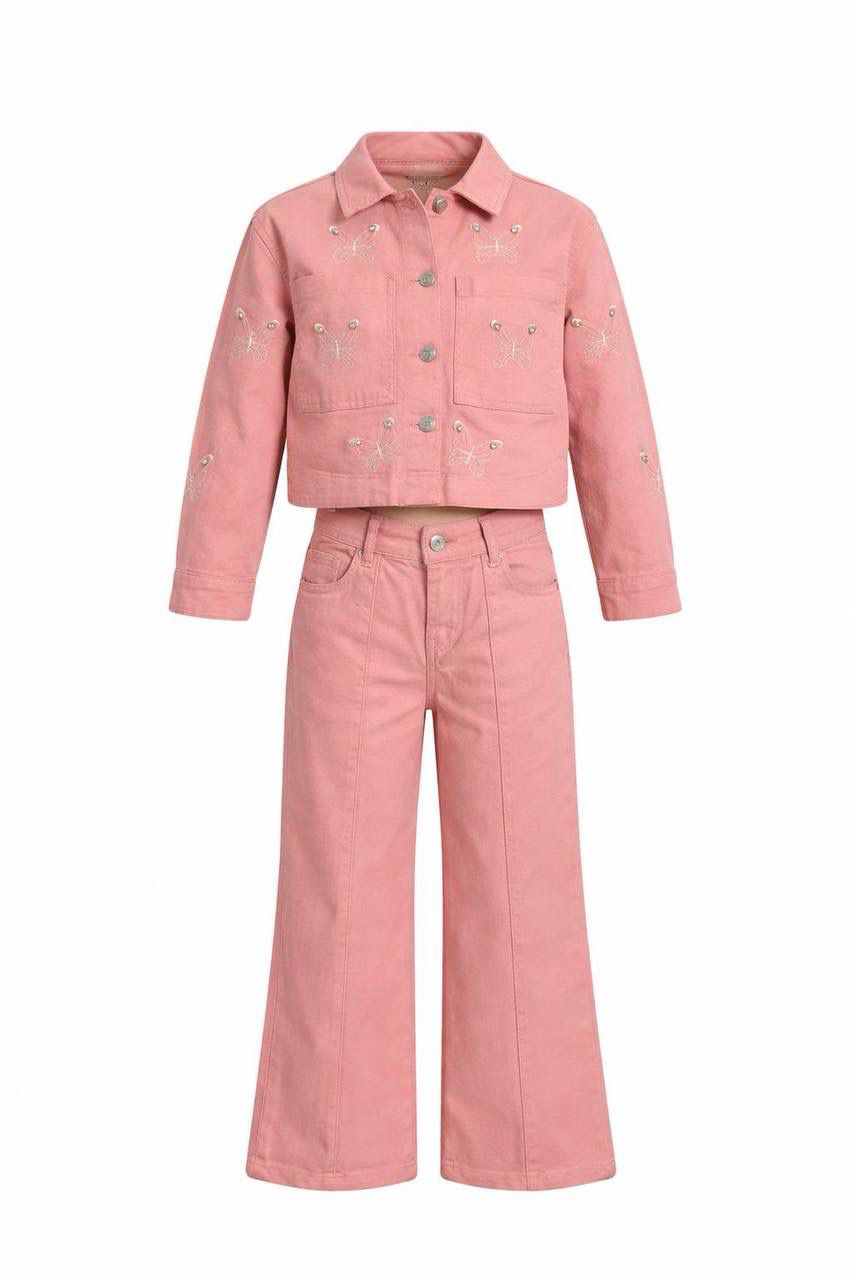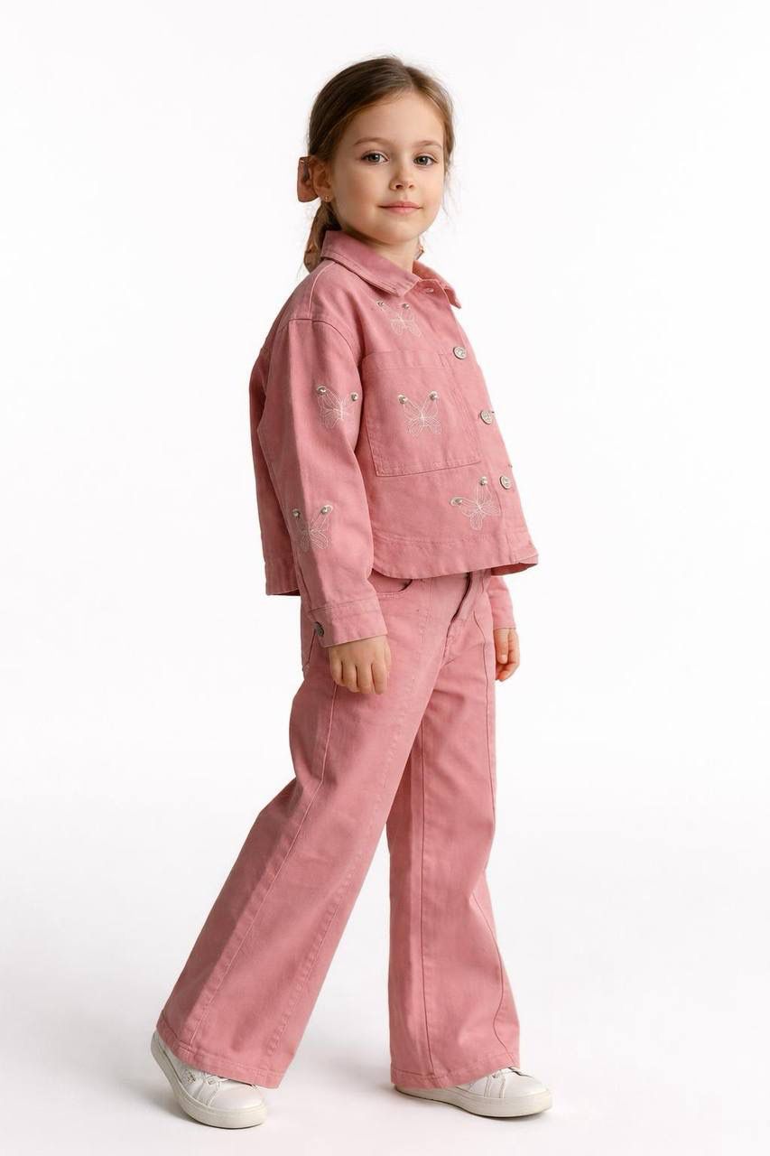 Kelebek İşlemeli Taşlı Ceketli Takım
