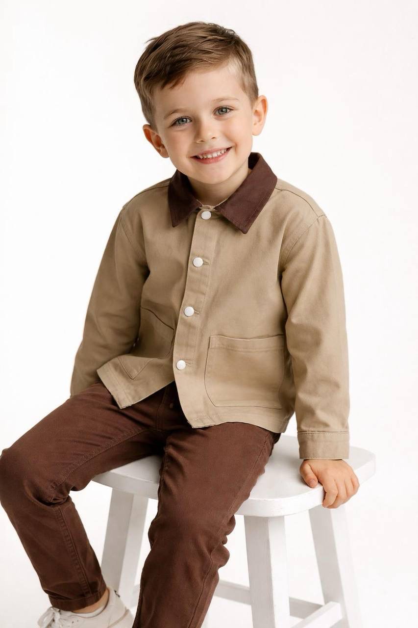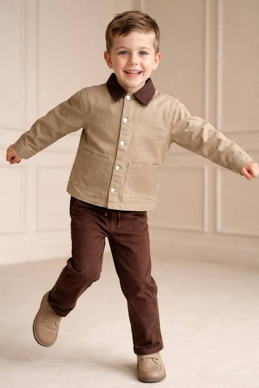 Küçük beylerin stiline vintage bir dokunuş! Little Bee Baby tarafından özenle tasarlanan bu ikili takım, toprak tonlarının sıcaklığını ve kanvas kumaşın dayanıklılığını bir araya getiriyor. Hem okul aktiviteleri hem de aile yemekleri için mükemmel bir tercih.