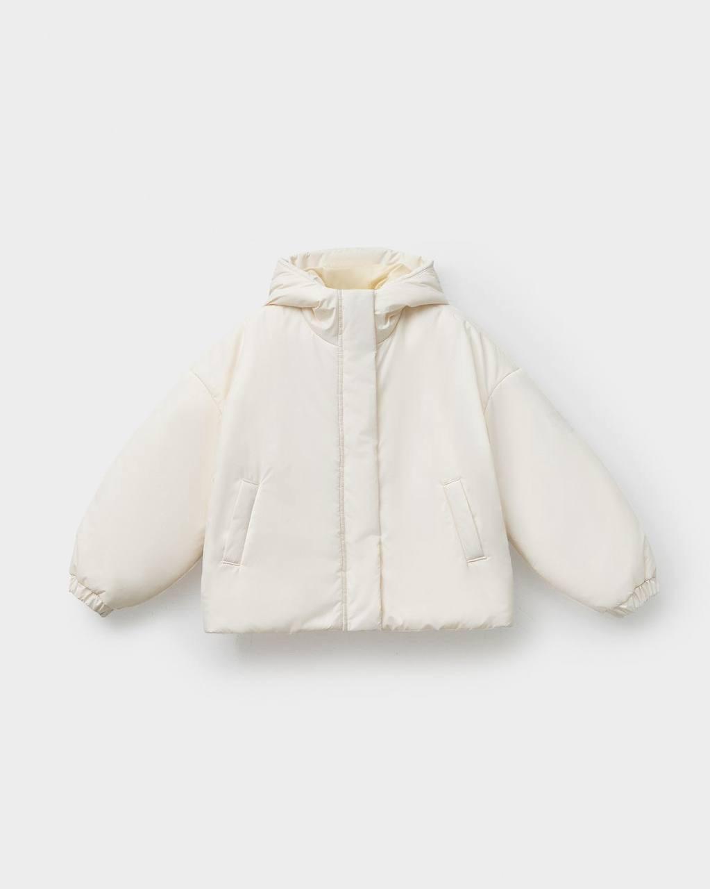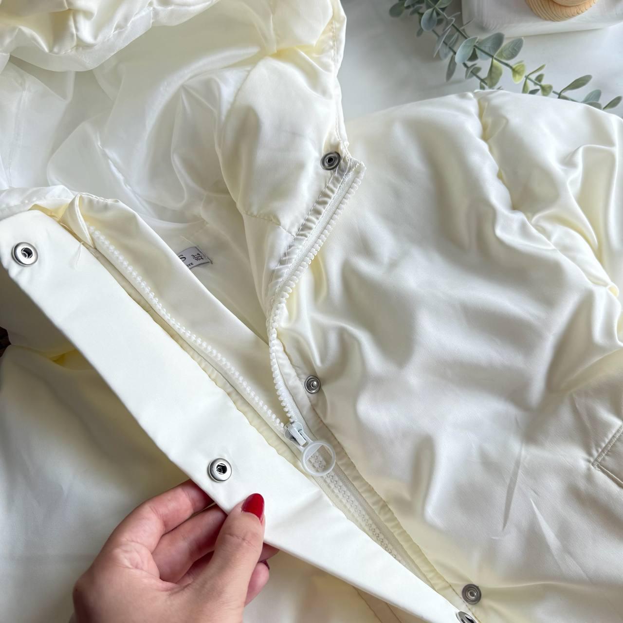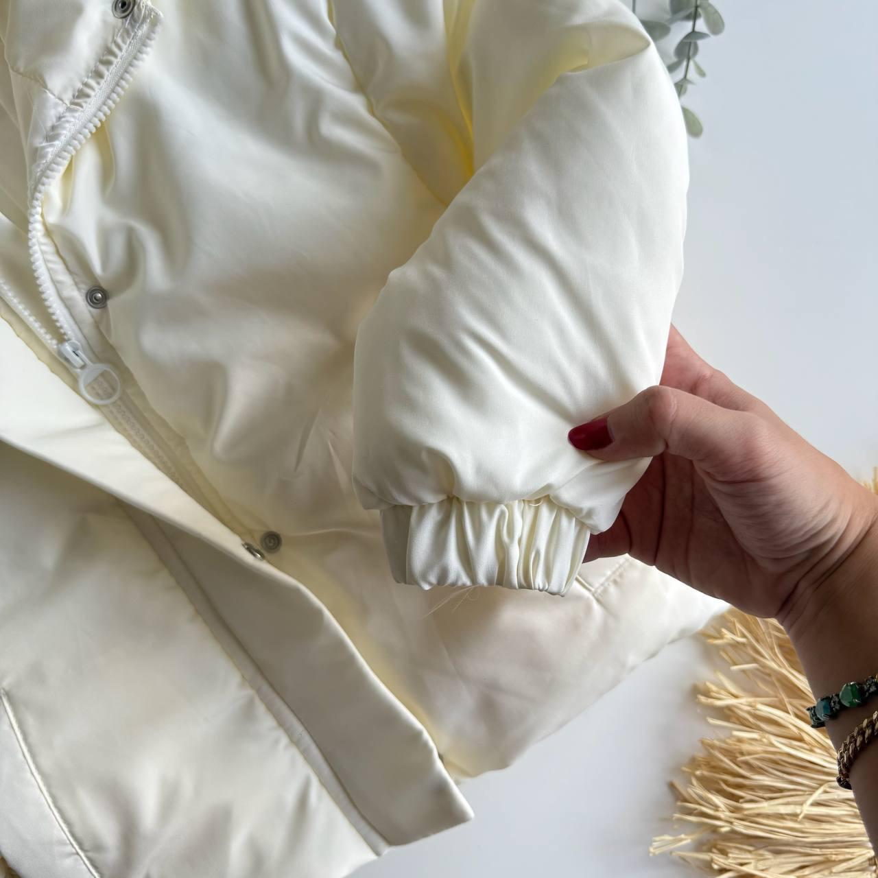 Su Geçirmez Şişme Kapüşonlu Mont Beyaz