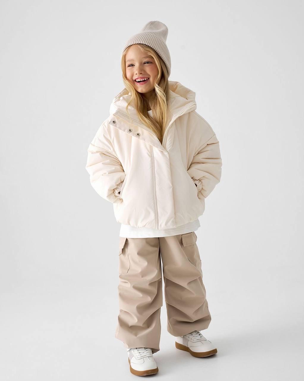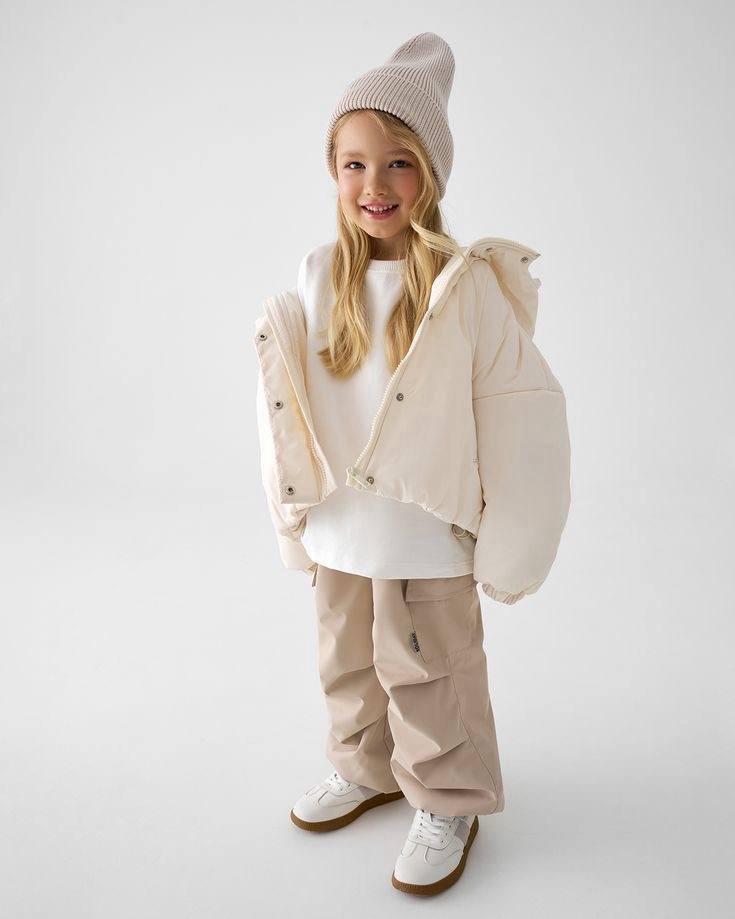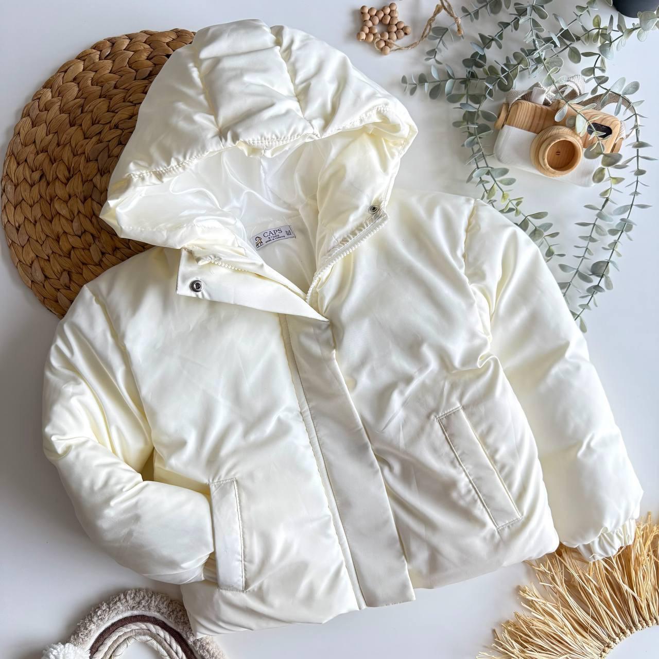 Su Geçirmez Şişme Kapüşonlu Mont Beyaz